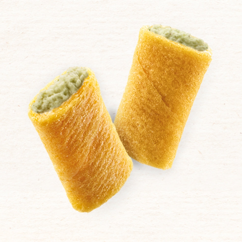 Dénomination légale : Mini Crêpe Dentelle fourrée (57%) d'une préparation saveur Pesto